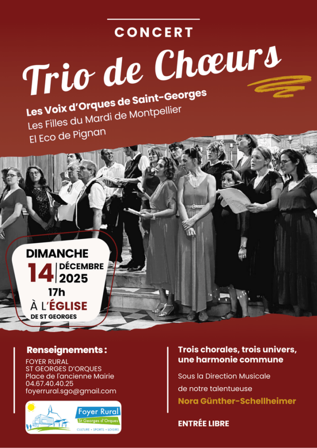 La commune vous invite Ă un moment musical dâexception avec la rencontre de trois chorales, rĂ©unies pour un concert unique placĂ© sous le signe de lâharmonie et du partage.